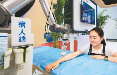 6月9日,在首届中国-中东欧国家博览会上,市民体验“5G”在智慧医疗中的应用。