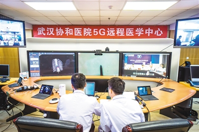 7月17日,湖北武汉协和医院的专家通过5G网络指导500公里之外的咸丰县医院医生实施胸椎手术。