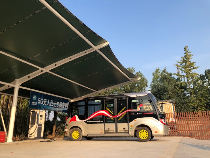 5G无人驾驶电动微公交无感充电 (王海燕 摄)