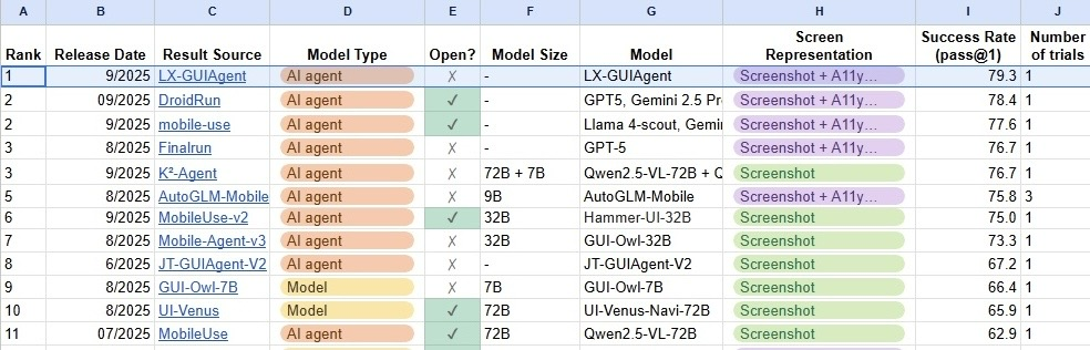 AndroidWorld是国际权威评测平台,能够全面评估智能体的综合性能。数智员工GUI智能体(LX-GUIAgent)在动态基准评测中超越了GPT-5、Llama 4、Gemini 2.5 Pro等多个基座模型构建的能力。