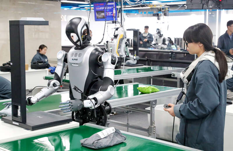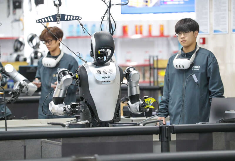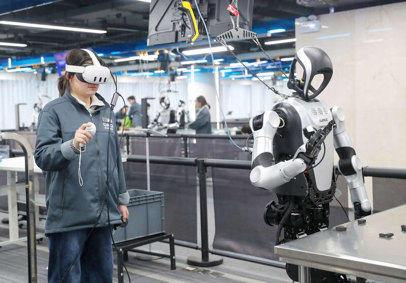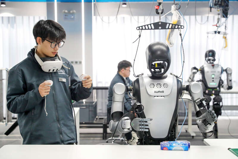 目前,这个1500平方米的训练场有31台机器人在此“就读”。像陈云龙这样的“00后”数据采集员,正是机器人成长路上的“启蒙老师”——他们用耐心为人工智能注入“技能经验”,也在这座城市的新兴产业中,找到属于自己的舞台。