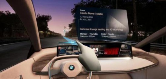 宝马出品的智能汽车,依靠手势控制方向盘,车内还有酷炫的家庭影院。谷业凯 摄