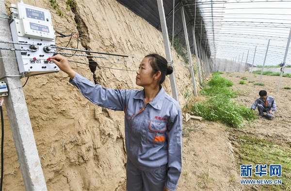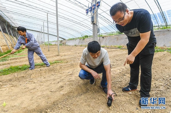 8月26日,河北省故城县农业农村局农技人员通过智能物联网传感器测试大棚土壤温湿度。 近年来,河北省故城县不断加快现代农业产业发展,高标准建设农业产业园,将物联网等高新技术应用于传统农业,推动农业种植现代化、智能化,助力乡村振兴。 新华社记者 李晓果 摄
