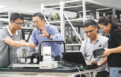安徽容知日新科技股份有限公司研发人员在实验台上做测试验证。公司目前拥有发明专利、软件著作权、高新技术成果转化等近百项自主知识产权。