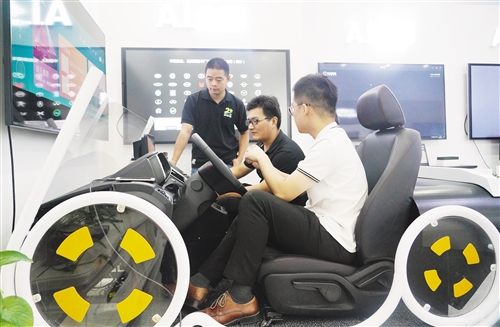 科大讯飞股份有限公司员工在介绍智能汽车语音助理系统。公司长期从事语音及语言、机器学习推理及自主学习等核心技术研究,致力于让机器“能听会说,能理解会思考”。