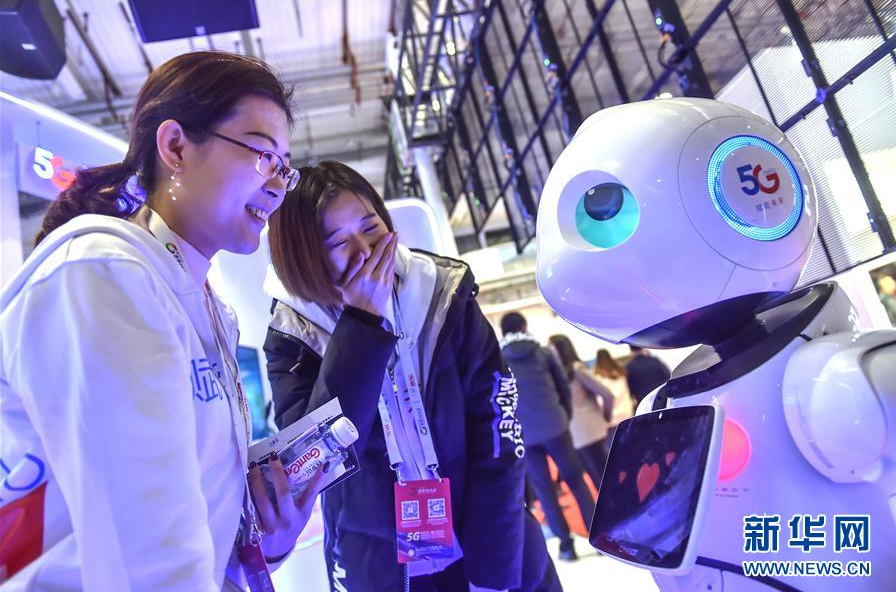 11月21日,参观者了解一款5G机器人。 当日,主题为“5G改变世界,5G创造未来”的2019世界5G大会在北京开幕。 新华社发(彭子洋摄)