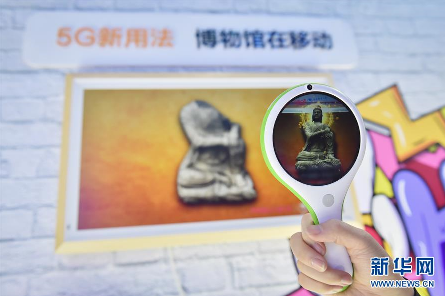 11月21日,在移动博物馆展区,参展商展示利用AR技术“复原”破损文物的原始面貌。 当日,主题为“5G改变世界,5G创造未来”的2019世界5G大会在北京开幕。 新华社发(彭子洋摄)