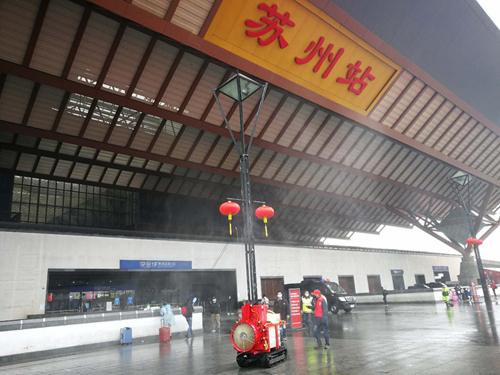 智能高效环卫消毒机器人在苏州火车站进行消杀作业