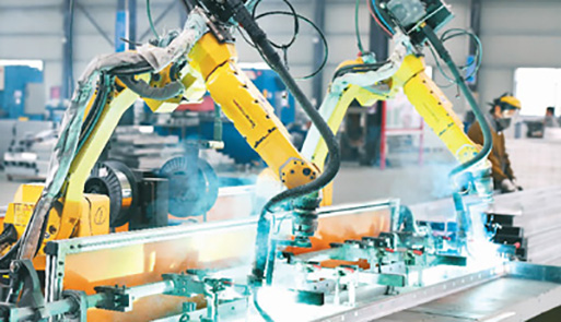在江西省宜春市景兴铝模板制造有限公司,全自动焊接机器人在进行焊接作业。在复工复产过程中,当地一些企业开启“新开工模式”,依托工业互联网平台,提升生产效率和缓解用工难题。人民视觉