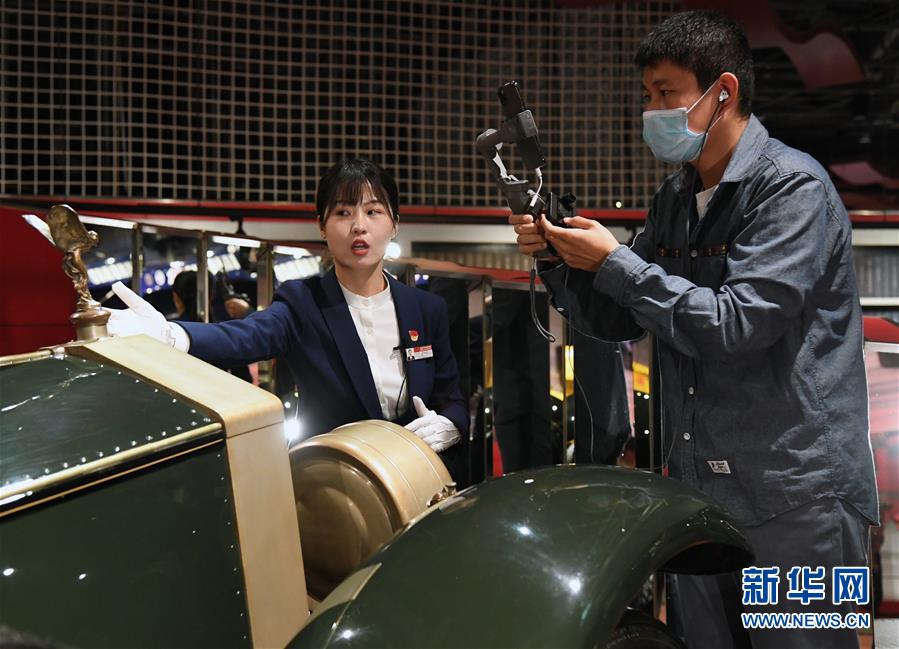 4月30日,在北京汽车博物馆,讲解员通过网络直播平台介绍馆藏车。 当日,北京汽车博物馆举办“云游博物馆”活动,通过网络直播展示馆藏车、介绍汽车百年发展史,让网友足不出户“云”中赏车。本次直播活动将持续至5月3日。 新华社记者 任超 摄