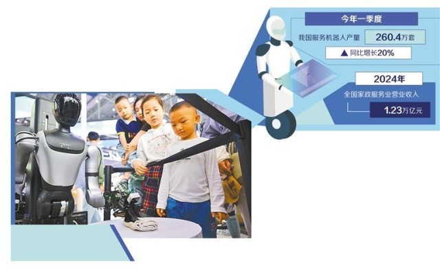在政策、技术与市场需求多重因素驱动下,保姆机器人正开拓产业新蓝海。今年一季度,我国服务机器人产量达260.4万套,同比增长20%。“目前,人形机器人处于技术突破与商业化探索并行的关键阶段,一旦技术成熟并规模化商用,将对服务业带来变革性影响。”王志伟说。